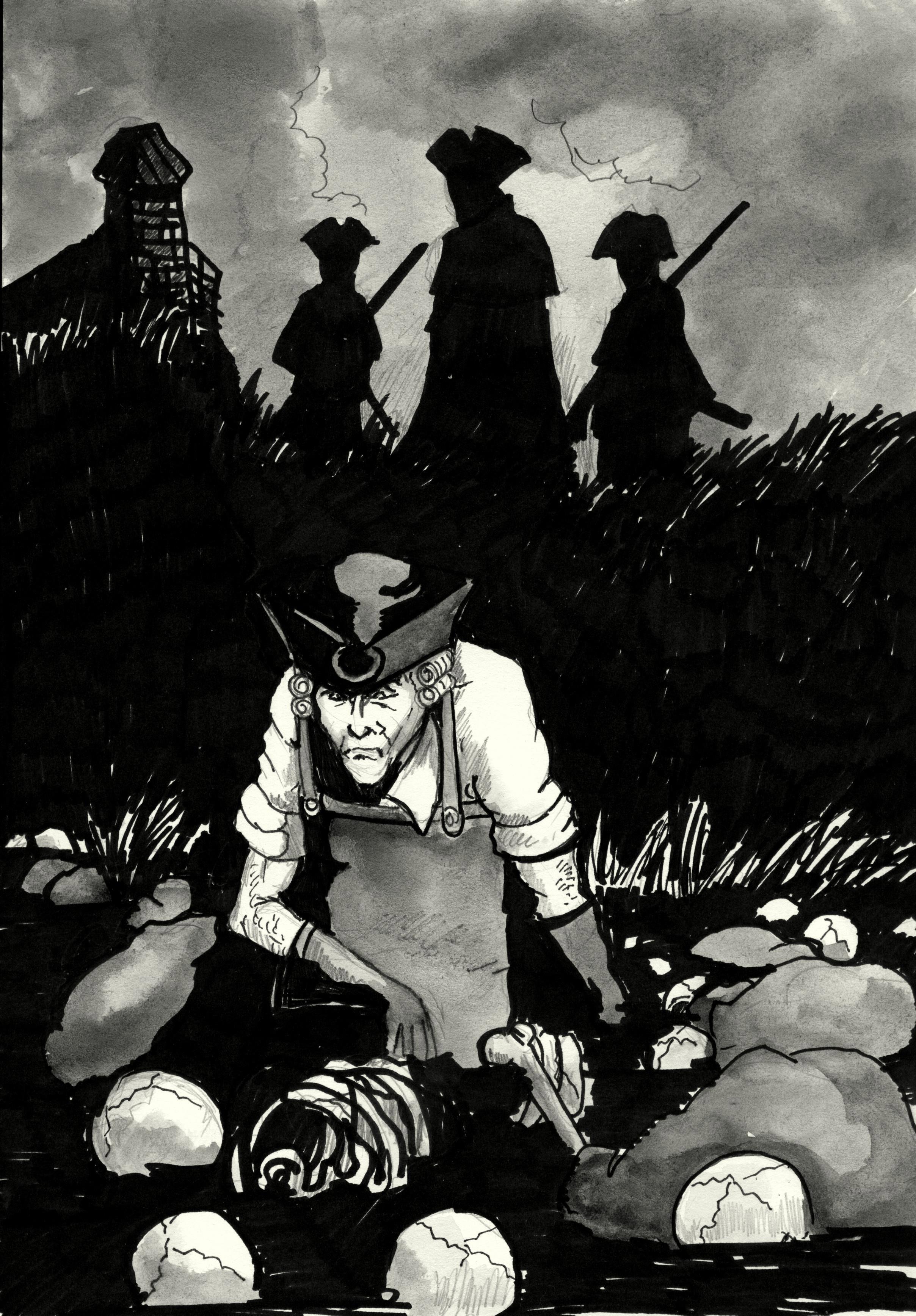 В обширной илистой впадине мужики в броднях до паха медленно ходили по вязкому дну, вытягивая ноги из густой грязно-зелёной жижи. Они шаг за шагом прощупывали месиво перед собой шестами и баграми. Что находили, волокли на берег, там выкладывали в ряд – костяки и почерневшие рогожные кули с ужасным содержимым. Лекарю из больничной казармы приказано было сосчитать находки, учесть раны на телах и отделить годных для опознания.