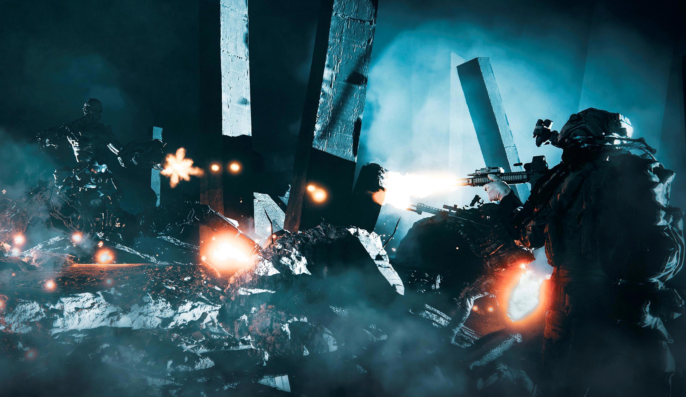 Душный, застоявшийся воздух подземной парковки разрывали крики раненных, короткие очереди штурмовых винтовок и противный визг механизмов. Рик двигался спиной вперёд, шаря фонарём, закреплённым на цевье штурмовой винтовки, в попытке обнаружить это кибернетическое адское отродье среди множества покосившихся бетонных опор, испещрённых выбоинами от пуль.