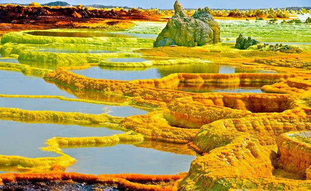 Кислотное озеро вулкана Даллол в Данакильской котловине