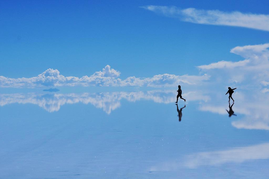 Солончак Уюни, Боливия. Когда вокруг на несколько километров нет ничего, кроме идеально ровных соляных плит, может показаться, что ты находишься где-то не на Земле. В сезон дождей влага полирует поверхность солончака и он становиться похожим на огромное зеркало. В солнечную погоду лучи отражаются от блестящей соляной глади, и туристу легко представить себя посреди бескрайнего моря, где царит полный штиль. Сравнений много, но на самом деле знаменитый солончак на плато Альтиплано — это высохшее солёное озеро Уюни в Боливийских Андах, на высоте 3650 метров. Его отражающая способность и огромный размер используются для тестирования и калибровки орбитальных спутников.