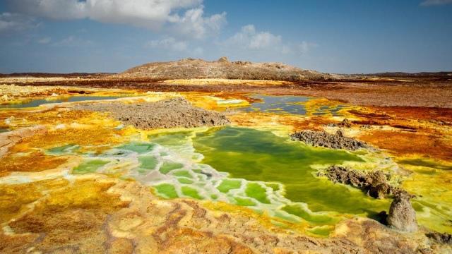 Данакильская котловина, Эфиопия. Это место похоже на ад. Просто филиал «ада» на Земле. Здесь очень жарко, много серных озёр и ядовитых газов.