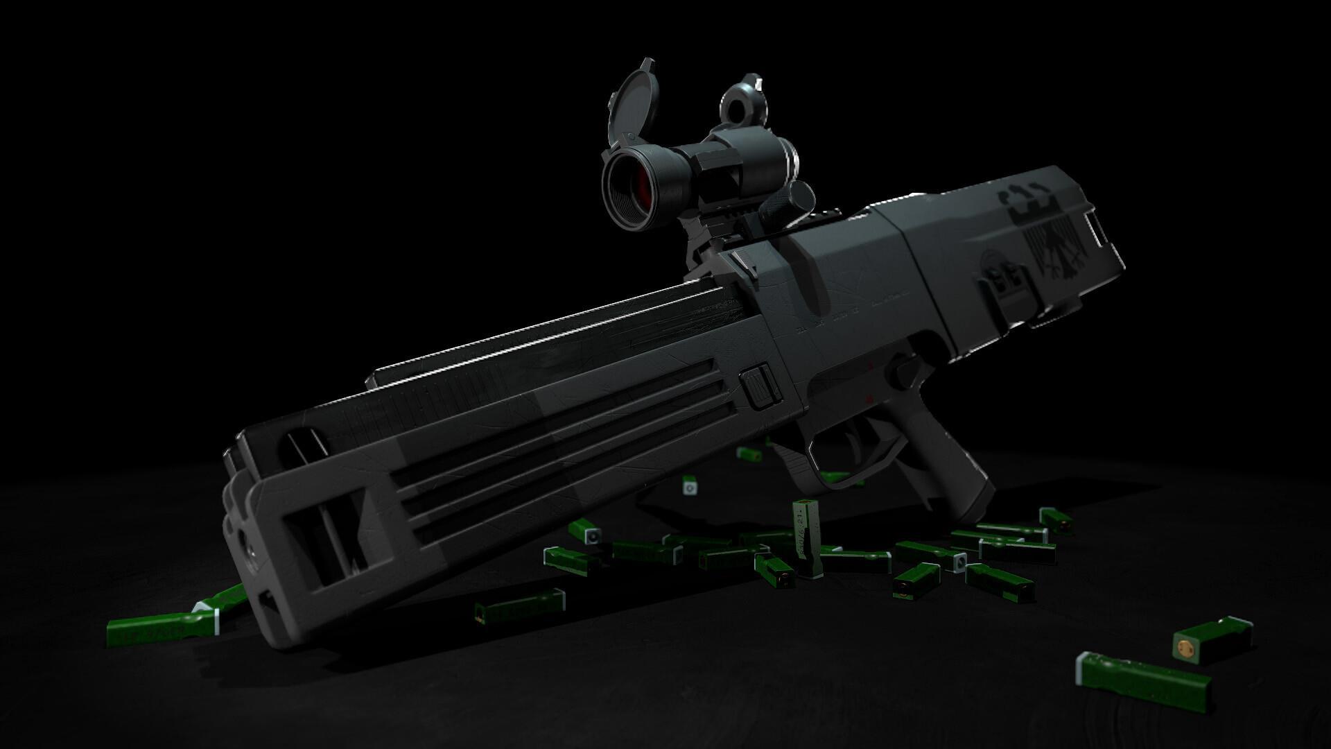 Тут все дело в самом патроне, конечно. Comprener? (Понимаешь?) Это, как я уже говорил, безгильзовый патрон М309. Классная штука. Твёрдый блок из спрессованного "нитрамида 50" - компонент такой, выполняет функцию порохового заряда, и 10 мм разрывная пуля. Пули к слову разные в комплекте идут, и разрывные и с титановым сердечником. Тут у инженеров и конструкторов какая задача была, сделать универсальное средство поражение всех возможных целей. Как бронированных, так и нет. И чтоб останавливающий эффект был высок. Ведь это же оружие колониальной пехоты. А на необжитых просторах космоса иногда разные формы жизни встречаются. И агрессивные весьма, и грузные. Так что, надо чтобы и пробивало, и рвало на куски, и с ног, лап, щупалец, или чего там ещё, валило.