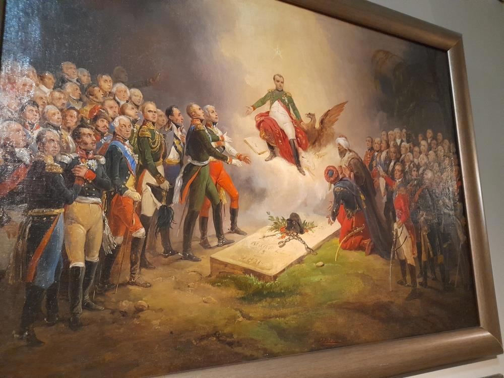 Не знаю кому как, а мне кажется это чуток кощунством и чуток святотатством - а французам вполне норм. И восторги на тему Наполеона у них несколько усохли только после того, как один из его последышей - Наполеон № 3 слил все что мог без успеха повоевал в Крыму а позже  Францию оккупировали пруссаки. Это больно ударило по самому больному месту французов - по их кошельку - и в итоге пыл поугас. Но до того - вот такие картинки были в моде и пользовались успехом.