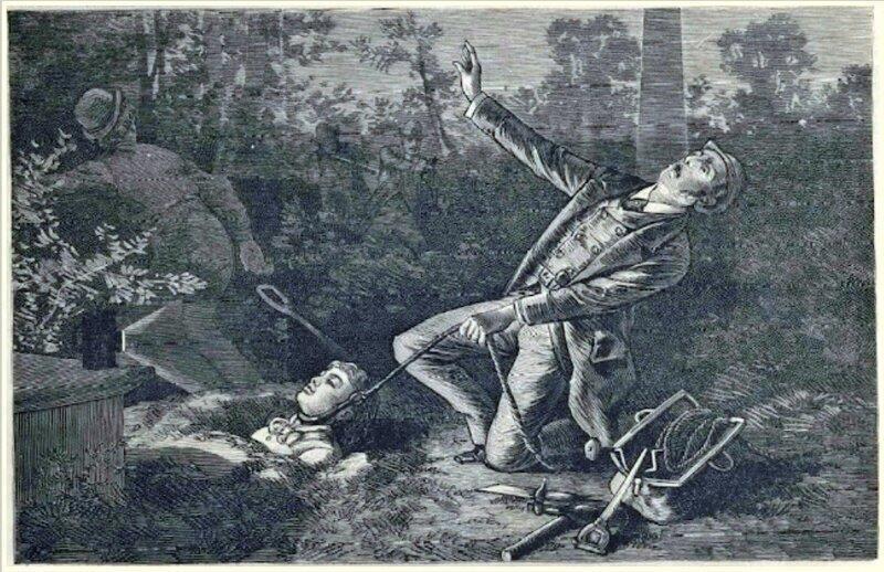 Этот случай, говорят, произошел в одной из ирландских деревушек в начале 18-го века. Безутешный мистер Макколл похоронил свою жену Маргарет, умершую от лихорадки. Прежде чем положить тело в гроб, муж тщетно пытался снять с распухшего пальца жены дорогое кольцо. Свидетелями его усилий были многие гости, пришедшие попрощаться с покойной. Той же ночью самые отважные, или самые гнусные из них, вскрыли могилу и попытались отрезать ножом палец трупа. Внезапно с пальца пошла кровь, мертвец ожил, благим матом оглашая все окрестности. Преступники упали замертво, а Маргарет кинулась к родному дому. Услышав стук в дверь, ее муж заявил детям «Если бы я не знал, что ваша мать мертва, я подумал бы что это она». Отперев дверь, он увидел свою благоверную в крови и в погребальной одежде, и тут же стал еще одной жертвой ее внезапного воскрешения. Сама же Маргарет прожила впоследствии немало лет, вышла вторично замуж и родила детей. На ее надгробии, сохранившемся до сих пор, написано «Жила однажды, похоронена дважды» …. на https://author.today/work/217991/ опубликована десятая глава романа «Посмертно влюбленные», седьмой книги исторической серии «Kyrie Eleison».
