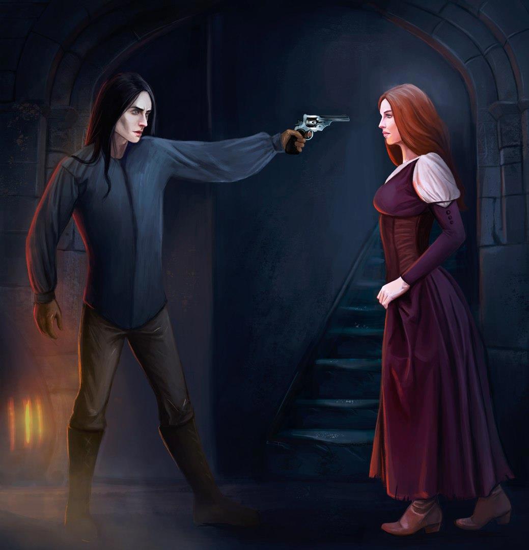 К тому времени были проведены бал "Трем мушкетерам" и два фэнтезийных. Последний из -за жесткого сюжета получился слишком предсказуемым и оттого скучноватым, и мне на следующем балу хотелось... хаоса. Искру, бурю, безумие и фатальное противостояние двух одинаково сильных команд/кланов. Нужно было подобрать стороны противостояния. Сначала я думала насчет светлых и темных магов, потом решила что противостояние вампиров и охотников на вампиров - жестче и радикальнее. И игровые правила проще прописать. Прописыванием же общего сюжета я так увлеклась, что накатала целую историю про поиски Избранного и его Дара, про авторский мир, где происходило действие, про необычные истории единственного охотника на стороне вампиров и единственного вампира на стороне охотников.