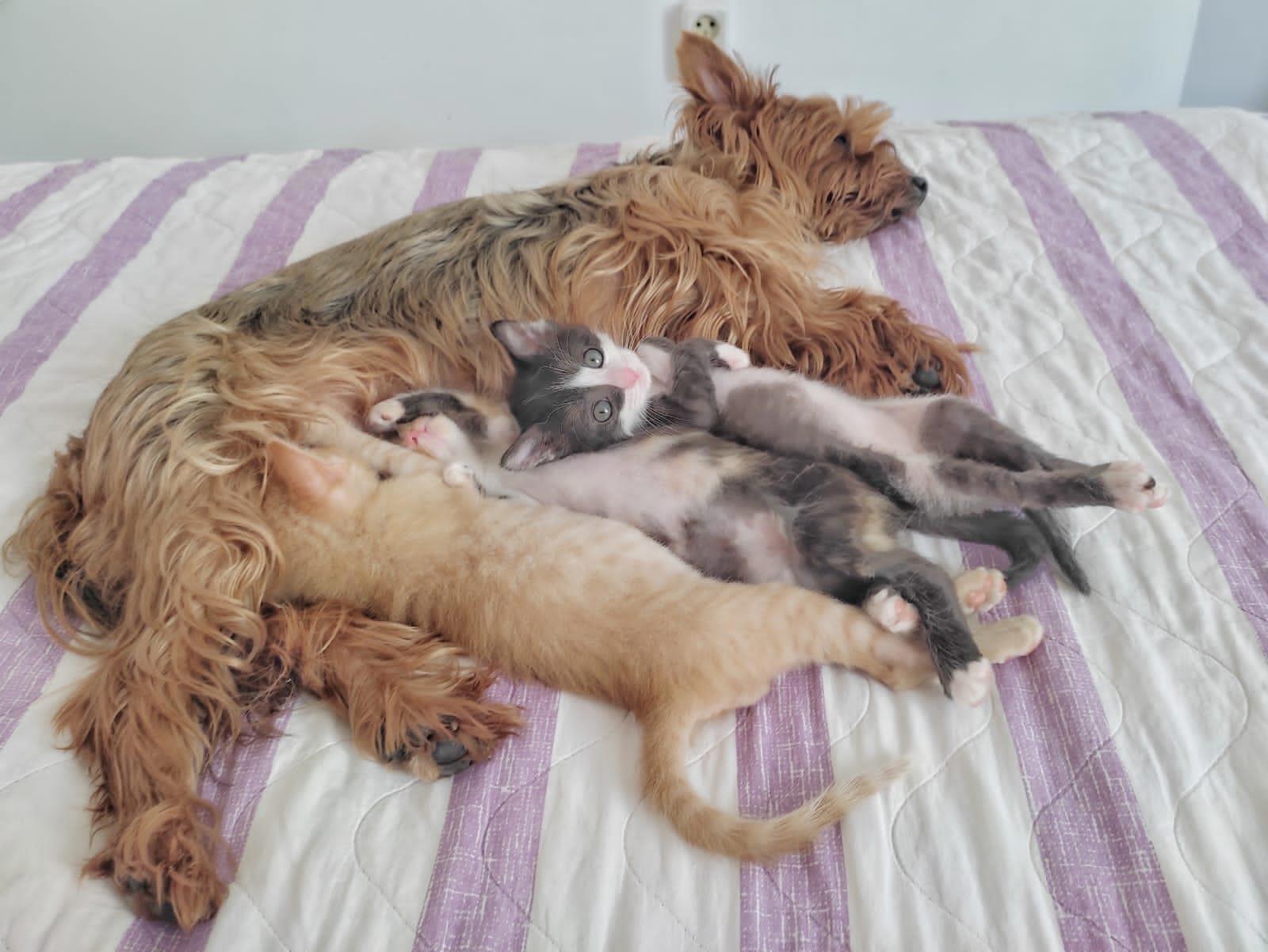 К слову, у дочки есть ещё два взрослых кота: перс и сфинкс, а также две собаки: спаниель и йоркширский терьер. Сначала они все относились к малышам настороженно, затем приняли в свою большую семью.