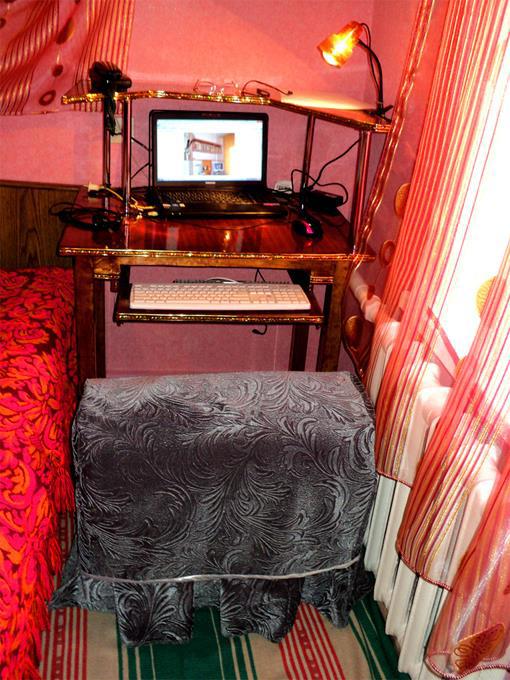 Пуфик у стола, тоже сделала сама из старого кресла. Понятно, что чехол сшила собственными ручками. И не потому, что бедная или жадная... просто обожаю, приложить ко всему мозг и ручки.
