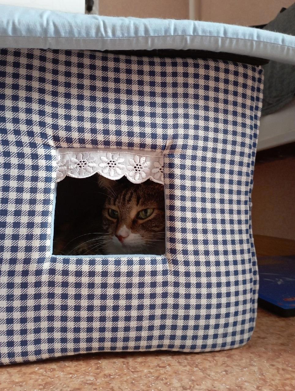 Рыська - ревнивая единоличница, категорически не принимает никаких других животных. Очень любит мягкое, у неё есть свой мягкий домик, мягкая подстилка с пледом на нижней полке стеллажа. Ну и на хозяйской подушке устроиться - милое дело