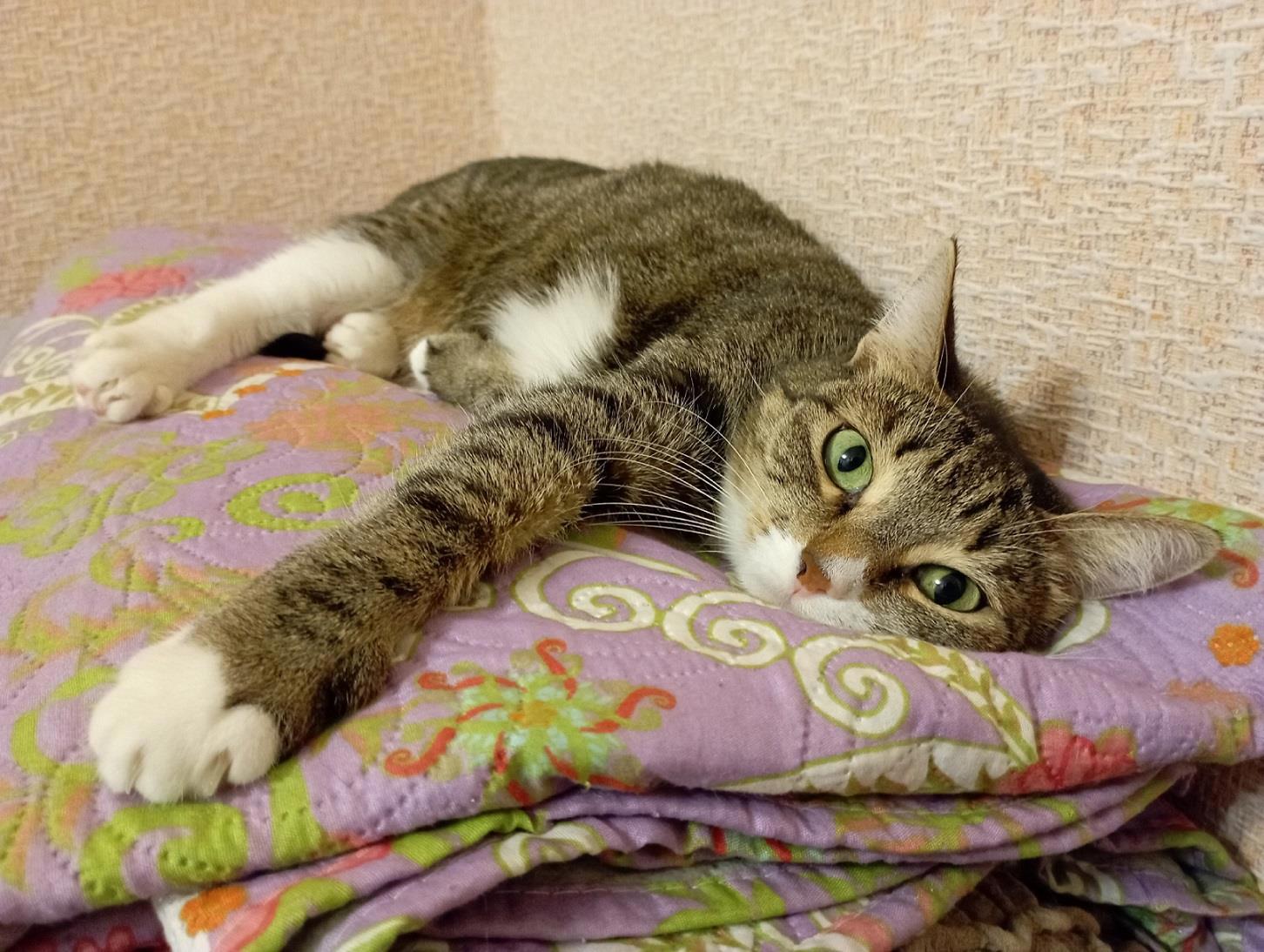 При этом кошка очень послушная и беспроблемная в бытовом плане. Ни разу не сходила мимо лотка, по столам не лазит, ноги под одеялом не ловит и даже спит синхронно с людьми, никаких тыгыдыков по ночам. Совсем не пищевичка, хрен её соблазнишь вкусняшкой.