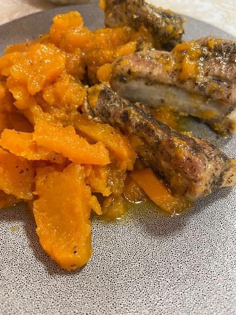 (правда, батат нарезала ,получается, некрупно и он частично разварился. И этот мягкий батат очень напоминал просто морковь))) В целом было сладковато, к жирноватой свинине было оригинально и вкусно