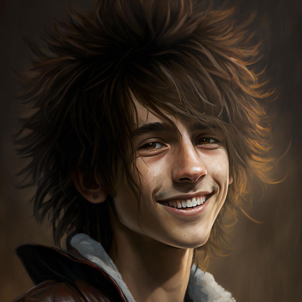 И шевелюра, и прикид, и улыбочка его наивная, детская))) Я просто в восторге от его визуализации! Пришлось лишь совсем немного почистить результат работы нейросети в фотошопе.