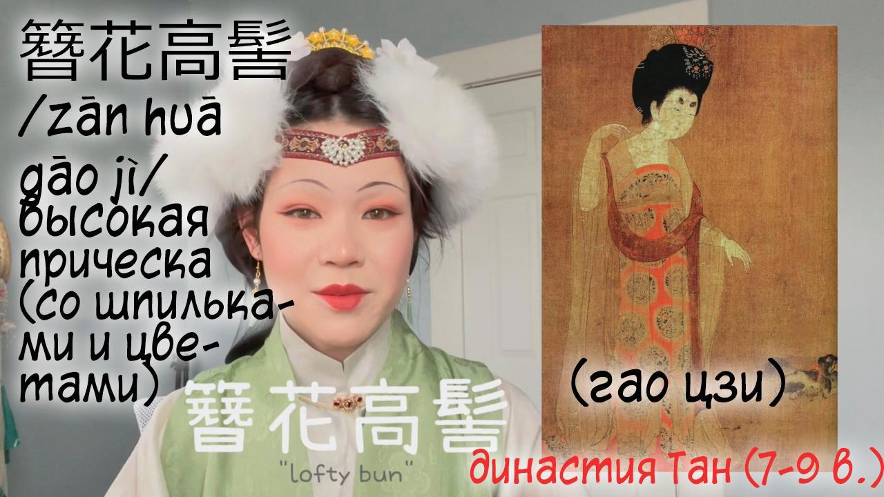 💛 簪花高髻 /zān huā gāo jì/ высокая прическа (со шпильками и цветами) (гао цзи)