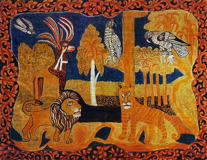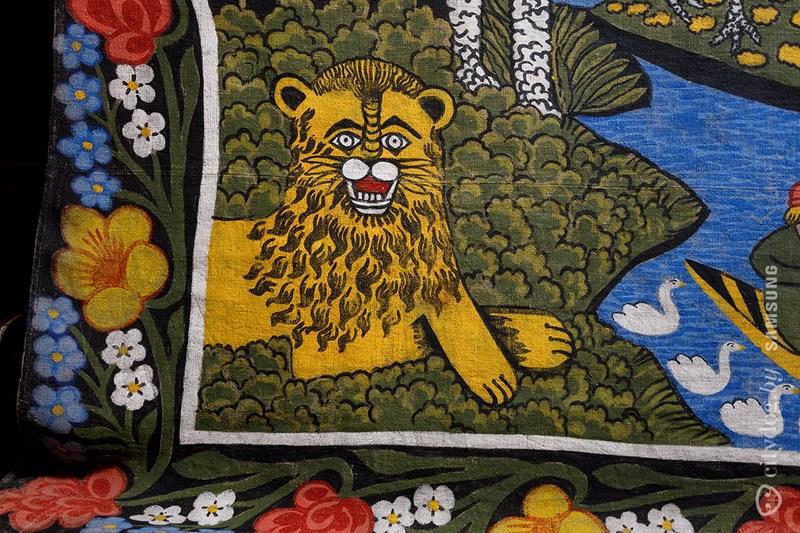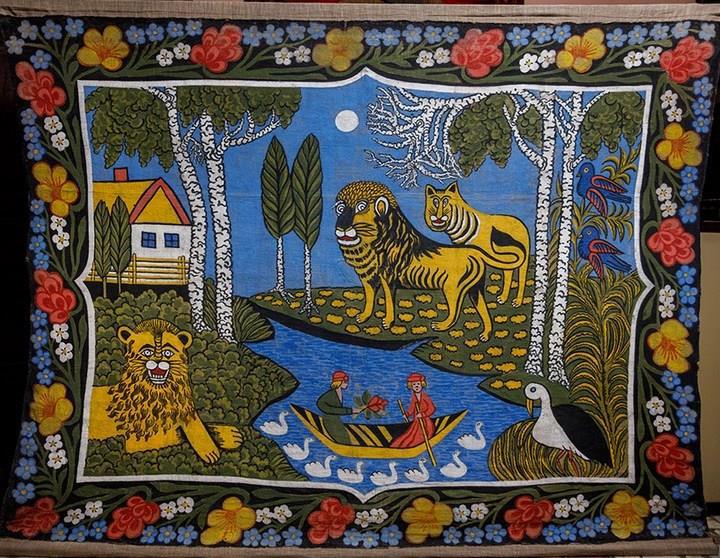 Чудесные ковры так и сгнили бы потихоньку, если бы не белорусский художник-график Владимир Басалыга, земляк художницы. Ковер с улыбающимися львами украшал стену в доме его тетушки, и Владимир упросил отдать его на выставку, а потом объехал окрестные села и нашел еще тринадцать подобных ковров. Большая часть была в ужасном состоянии, перед реставрацией их долго отмывали от грязи.