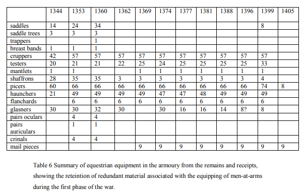 Впрочем, судя по тому, что большая часть этого хозяйства хранилась в арсенале безвылазно (только шаффроны в 1362 году пролюбили), это было либо слишком ценные, либо турнирные доспехи и на войну их не брали. Мантлет, кстати, тоже потеряли, но потом нашли.