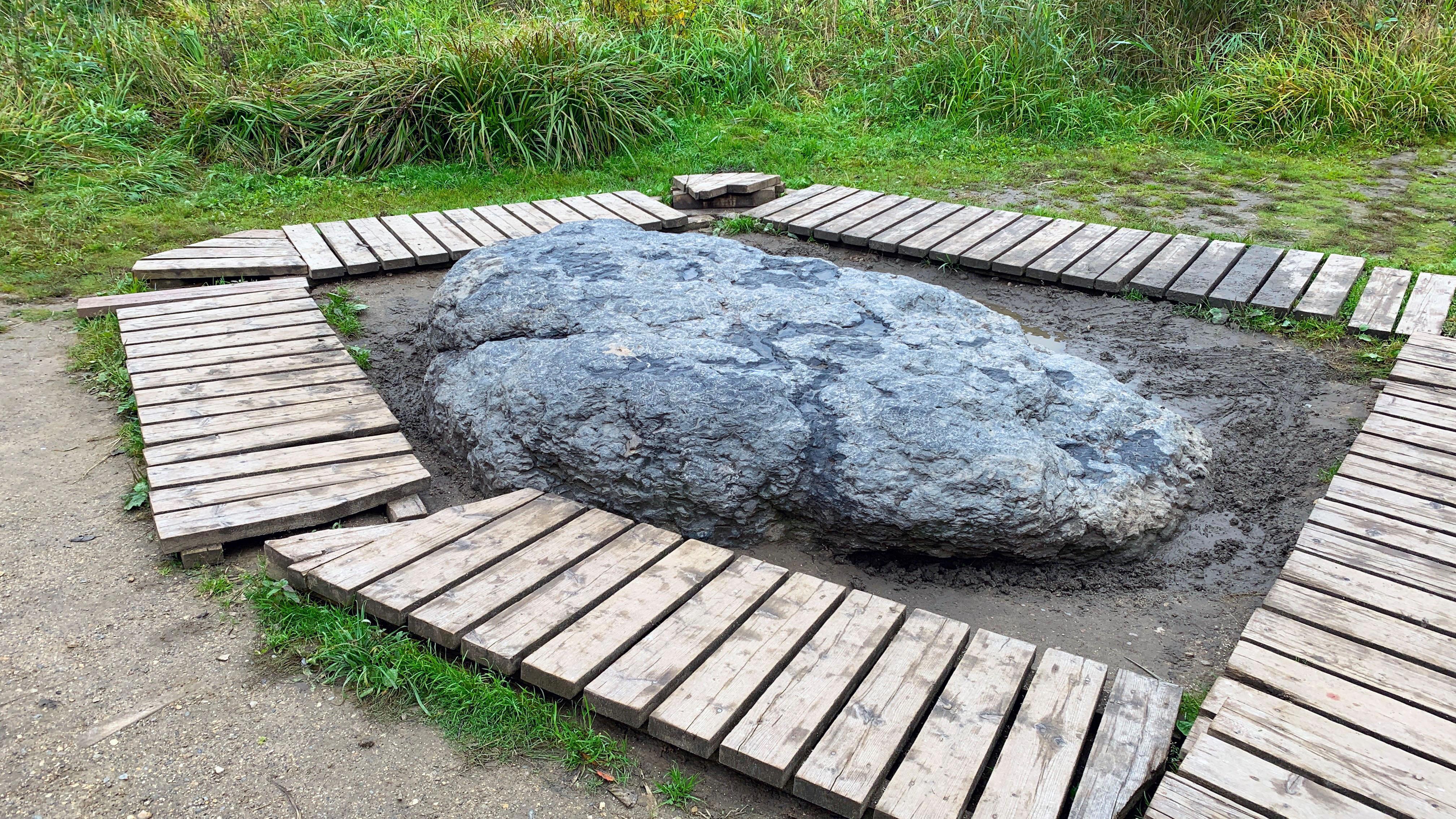 Синь-камень сначала закопали в специально вырытой яме — но через несколько лет он выпер на поверхность, и тогда его подняли с тогдашнего места, водрузили на некое плавсредство — то ли плот, то ли целый корабль, не знаю — и вывалили в озеро.