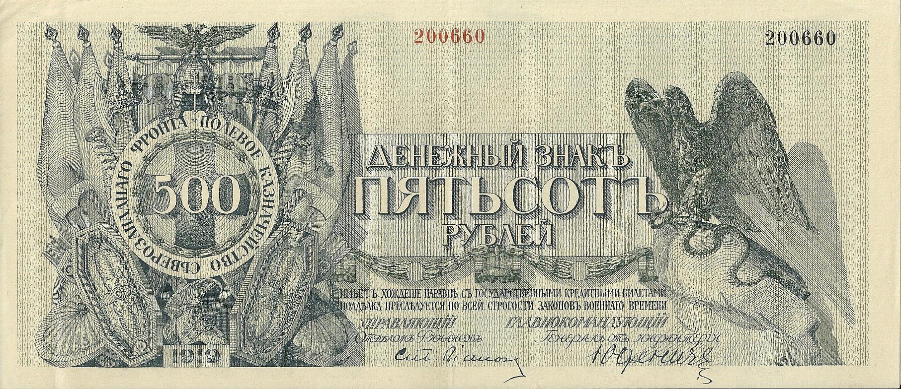 Одним из таких случаев стали денежные знаки Полевого казначейства Северо-Западного фронта, появившиеся в 1919 году.