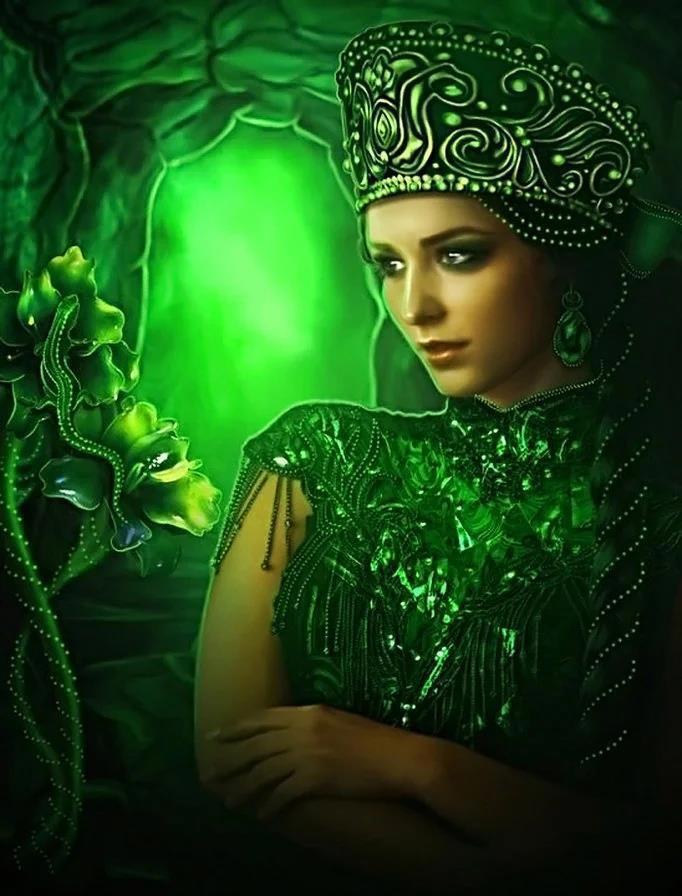 Хозяйка – могущественная и справедливая волшебница, хранительница драгоценных пород и камней. (Автор картины : Ирина Василенко)