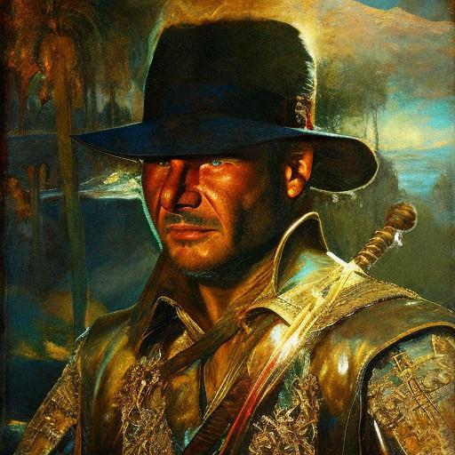 Перейдем к менее устрашающим вещам. Индиана Джонс в образе рыцаря. Более-менее удобоваримыми получились только две картинки:
