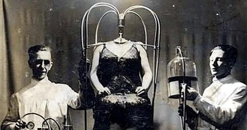 На картинке шоу уродов. Аттракцион "Безголовая женщина".