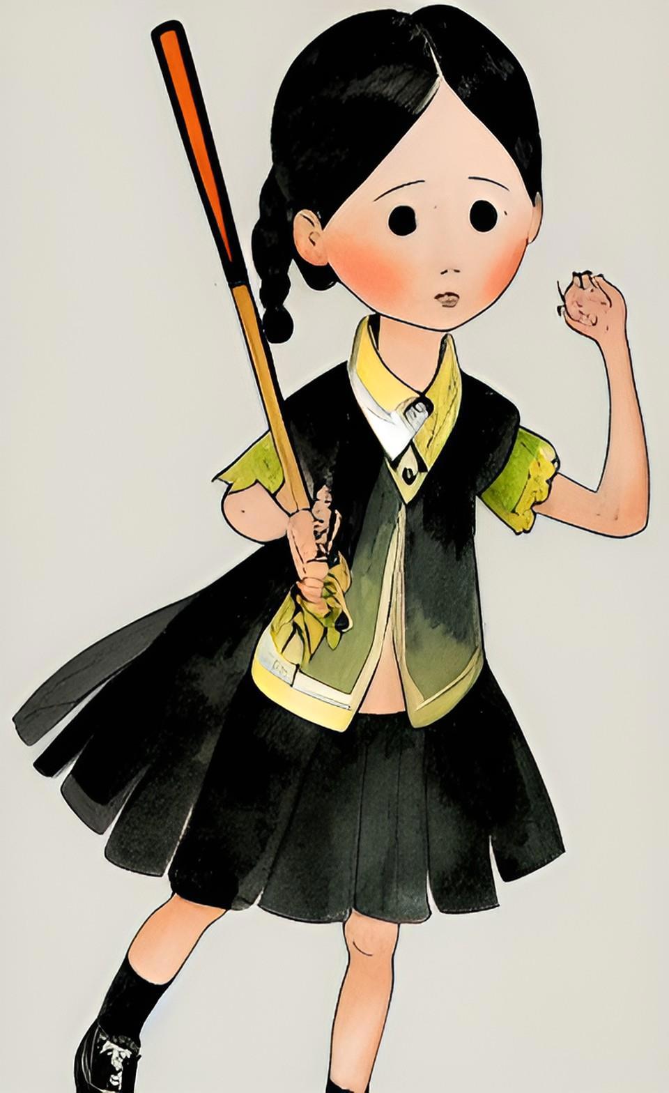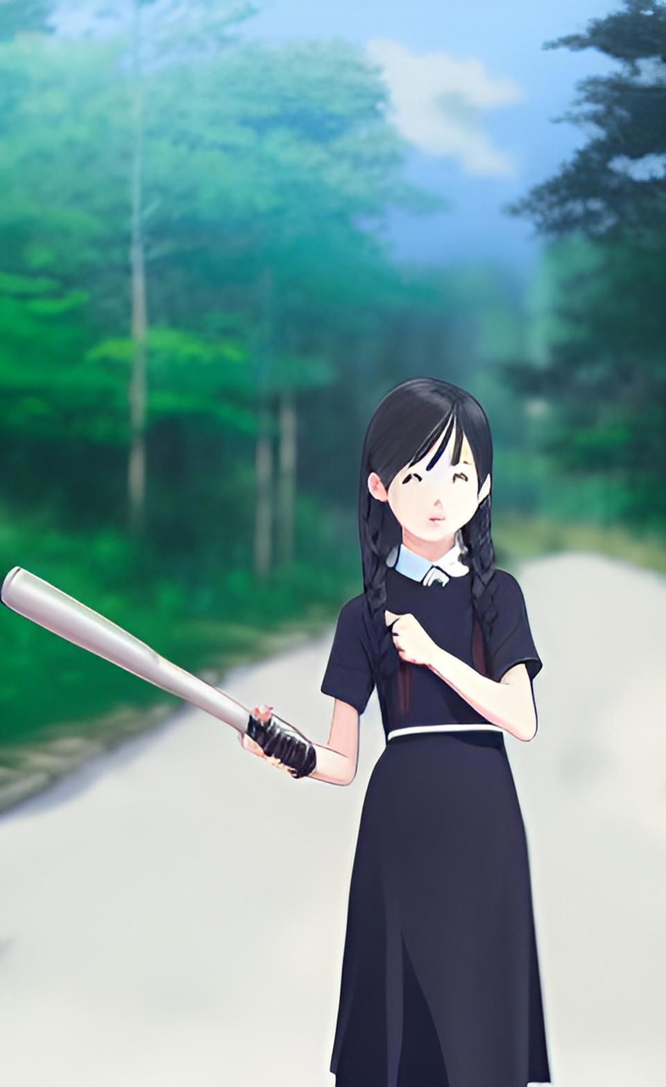 Это Ло Сюэфэн - девочка в черном платье и с бейсбольной битой) Но биту ей в руки дать было очень сложно)))