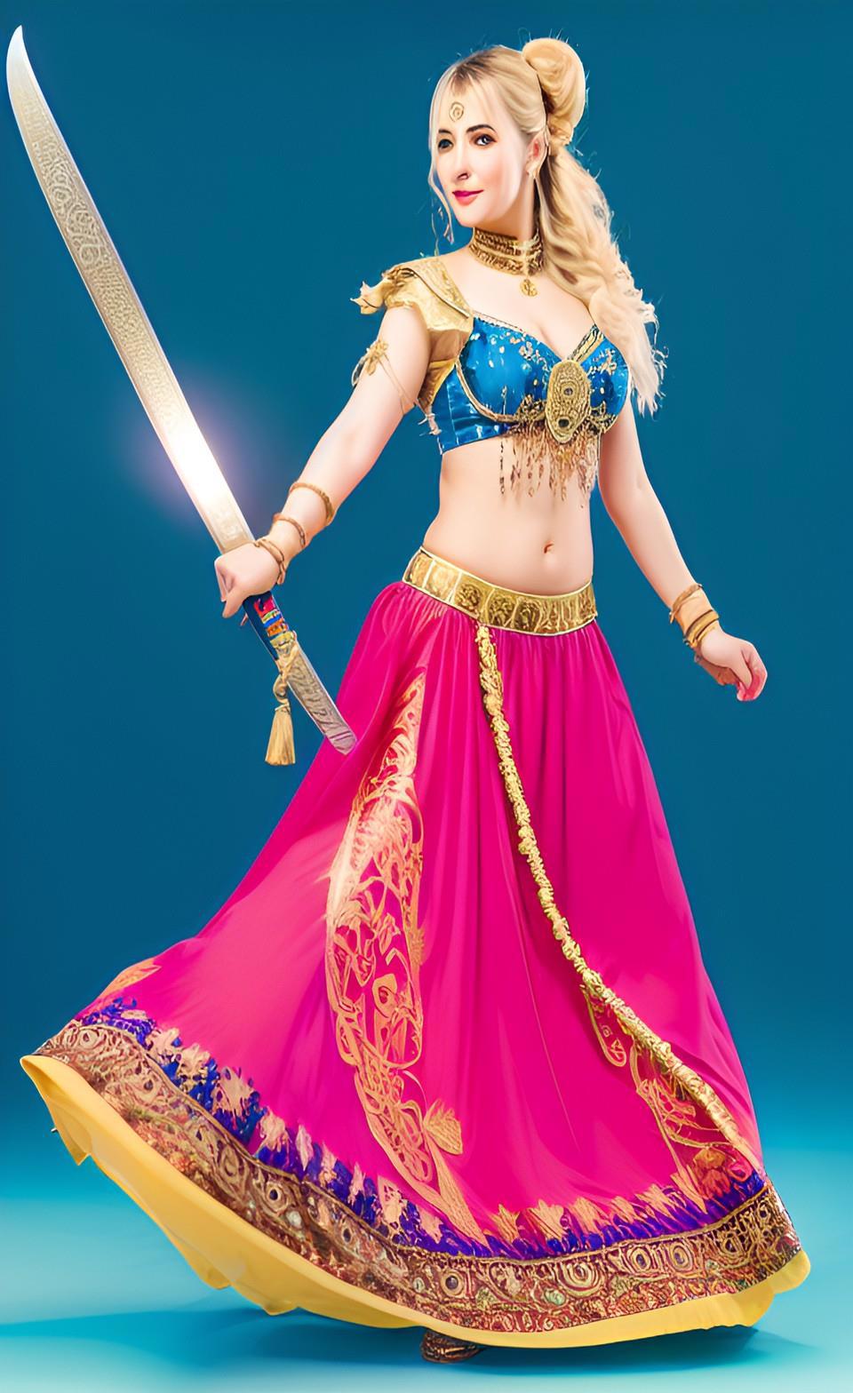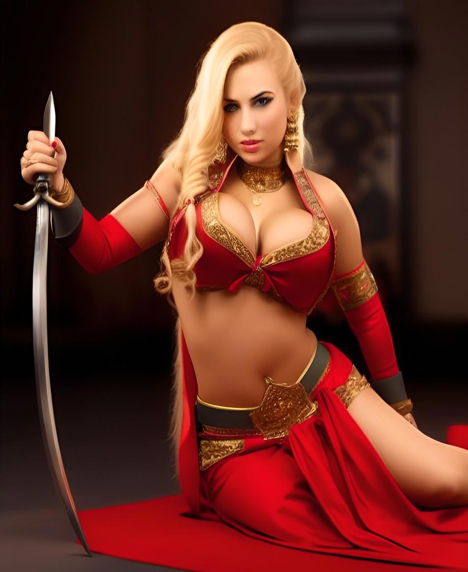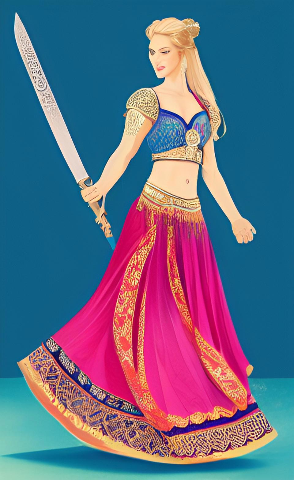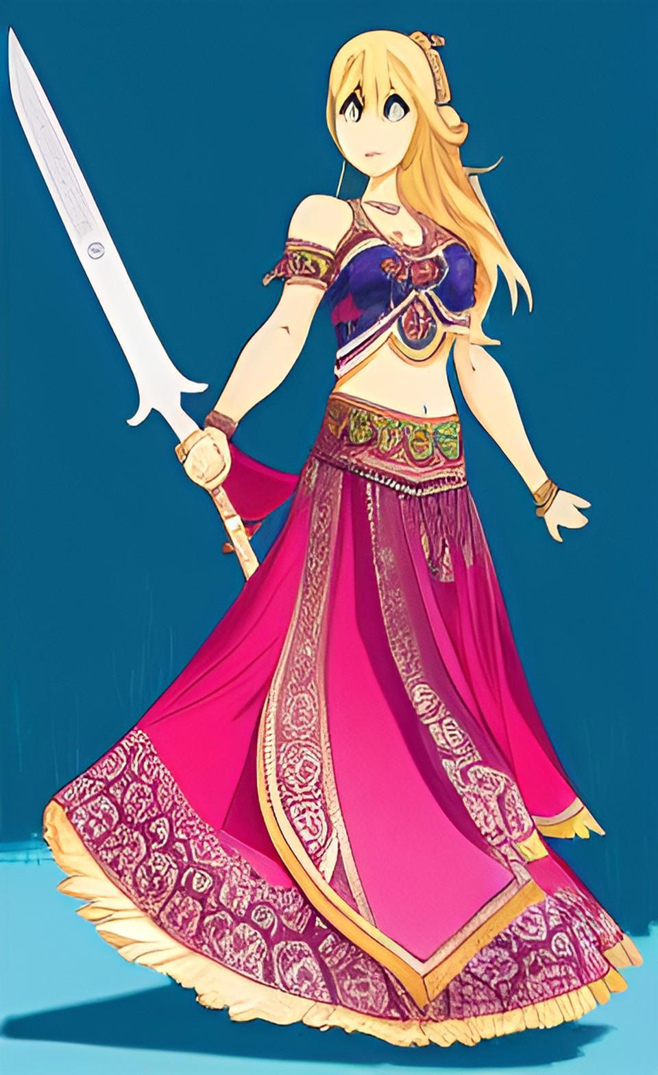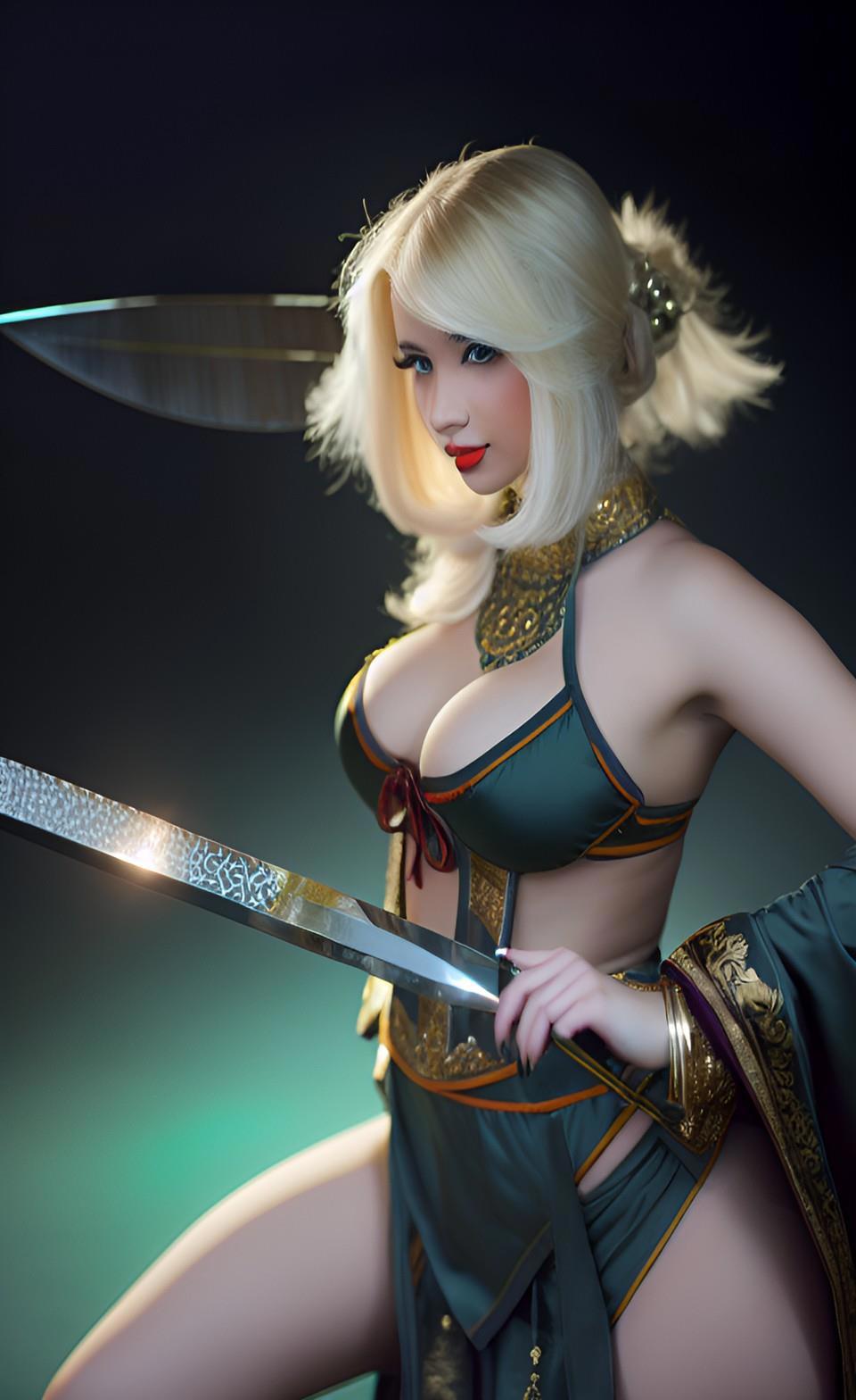 Мне нужна была девушка в восточном костюме и с мечом, но нейросеть упрямо отказывается рисовать персонажей, которые что-то держат в руках(((