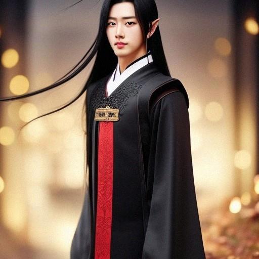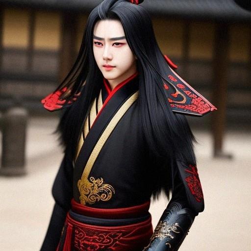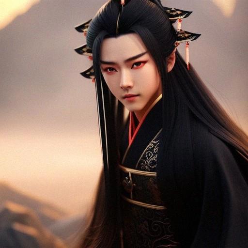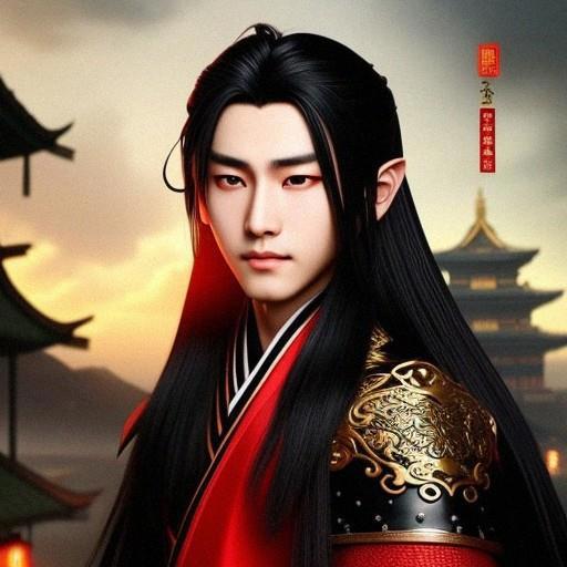 Изначально я хотела сделать Ван Хаосюаня - последнего из демонов из книги "Повседневная жизнь небожителя". Задала в строку запроса парня с длинными волосами в черно-красном ханьфу, и еще дополнительно написала, что мужчина, и все равно мне через раз девушек выдавали))) А уж когда я попросила красные глаза и заостренные уши, вообще жесть началась