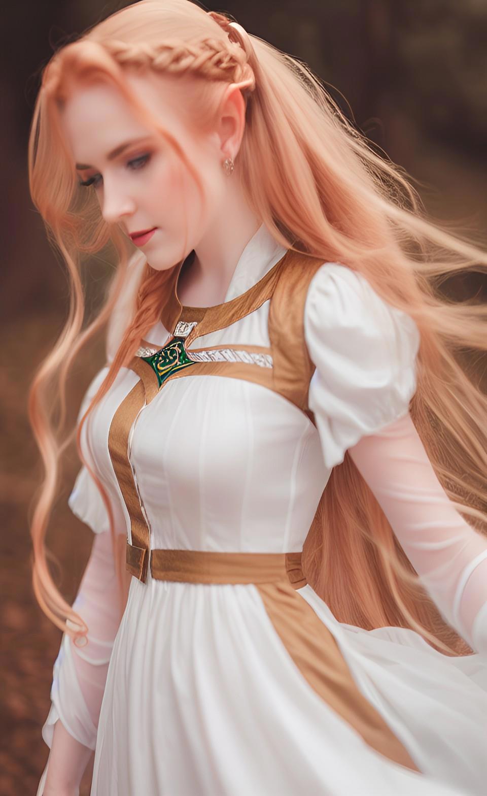 Лана. Тоже неплохо, но огрехи очень сильно бросаются в глаза. Во-первых, с прической нейросеть что-то начудила: косичку обернуть вокруг головы Лана еще могла, но выбритый висок - это не в ее стиле. Во-вторых, заостренное ухо. Дело в том, что я усомнился, что нейросеть поймет тег вроде elf-like body, поэтому написал просто elf. Ну, она и показала мне Лану-эльфийку. В душе она именно такая.
