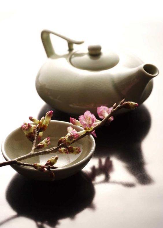 "Полную тишину мог нарушать только бурлящий в железном чайнике кипяток. Чайник приятно пел, ведь листочки железа располагались на его дне так, чтобы производить особую мелодию, в звуках которой можно было услышать шум ливня, приглушенный тучами, и плеск морских волн, разбивающихся где-то вдали о скалы, и шорох дождя в бамбуковом лесу, и шелест сосен на холме вдалеке"./из книги "Чайная церемония в Японии"