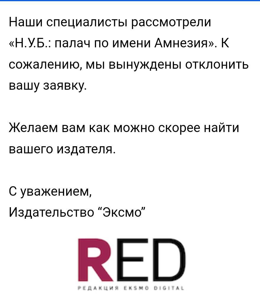 Автор: Богдан ДвуликийВчера утром я послал заявку в "Эксмо". Как водится, поволновался, успокоился и стал терпеливо ждать. Ведь у них указан срок рассмотрения заявки: до 3-х месяцев. Но ура! Мне ответили вечером того же дня. Правда отказом