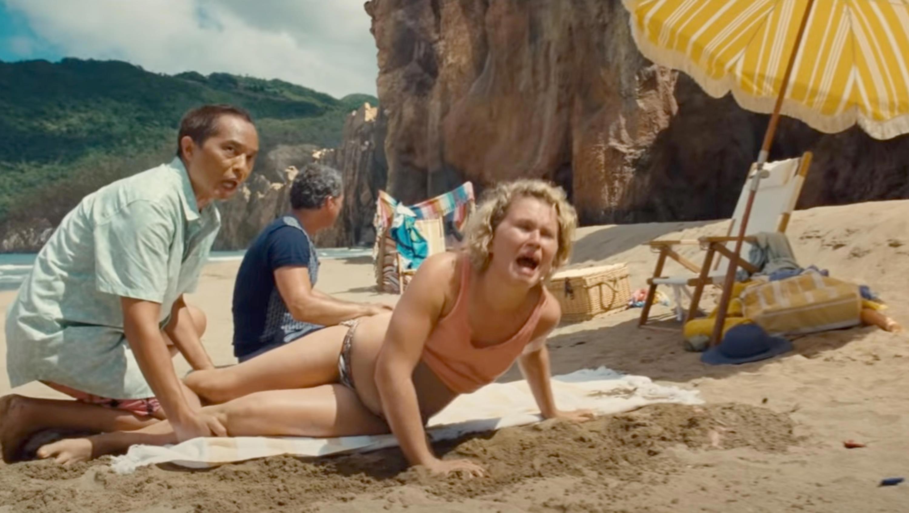 Семья приезжает на отдых. И они вместе с другими оказываются на уединенном пляже. Там начинают происходить странные вещи. Время ускорило свой бег. Они стали стареть. Выбраться люди с пляжа не могут. Начинают умирать.