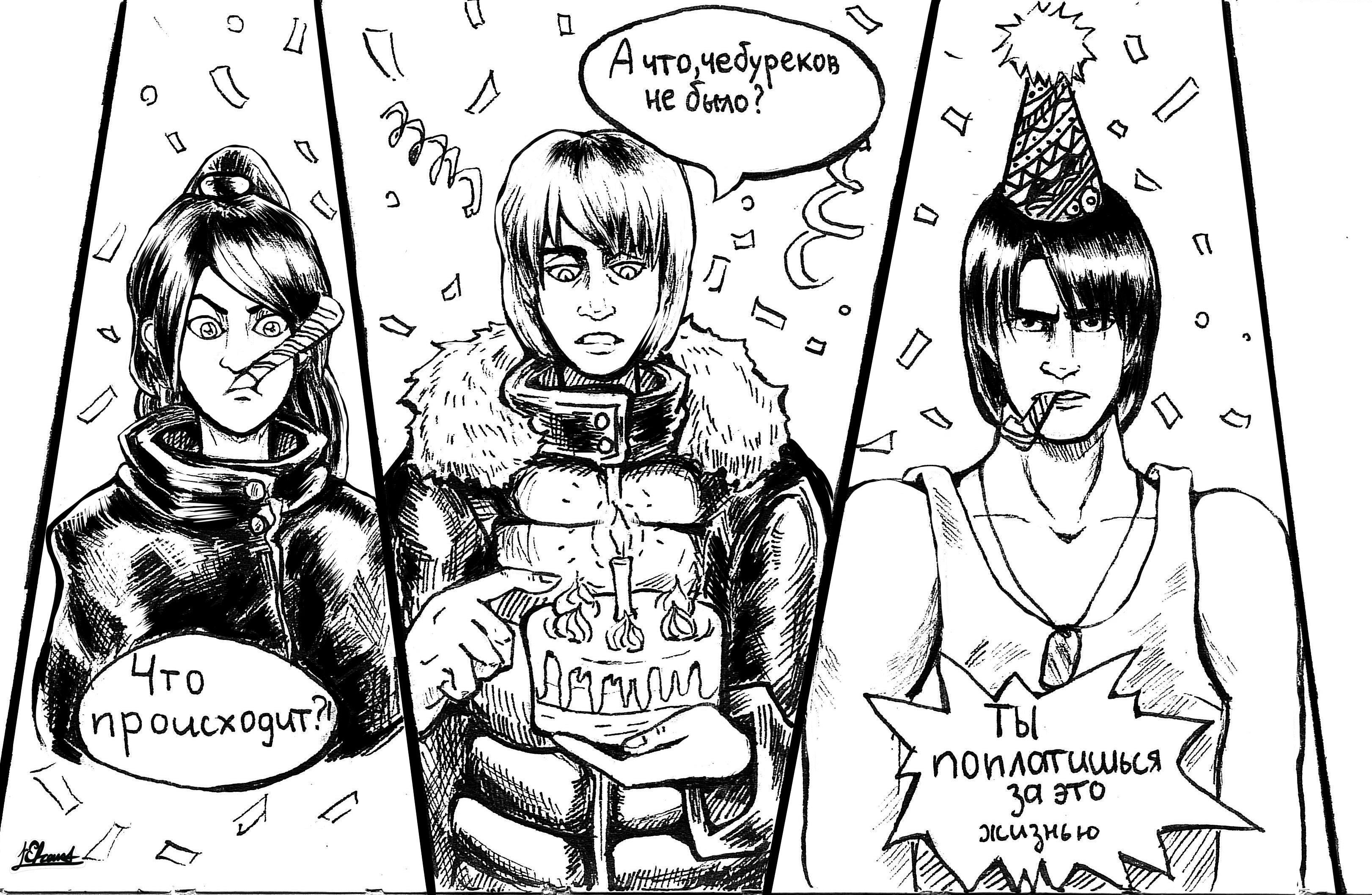 Ну а пока что я решила внезапно переместить персонажей из дурдома, который с ними сейчас творится, в атмосферу праздника. Как водится, неожиданный праздники любят не все)