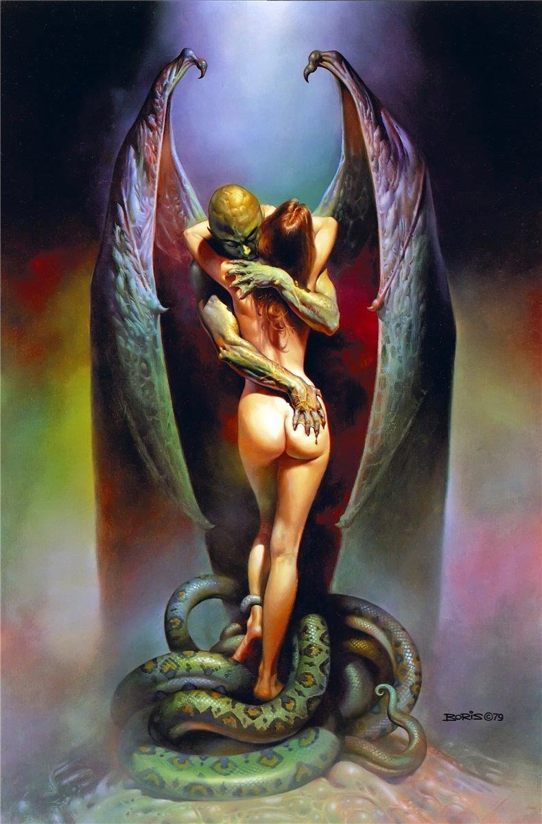Борис Вальехо, он же Борис Валледжо\Валледжио. Перуанец с американским паспортом, бодибилдер с кистью, любитель голых тел, некогда просто пропорционально красивых, а впоследствии просто ужасно перекачанных. И просто милый человек-творец: