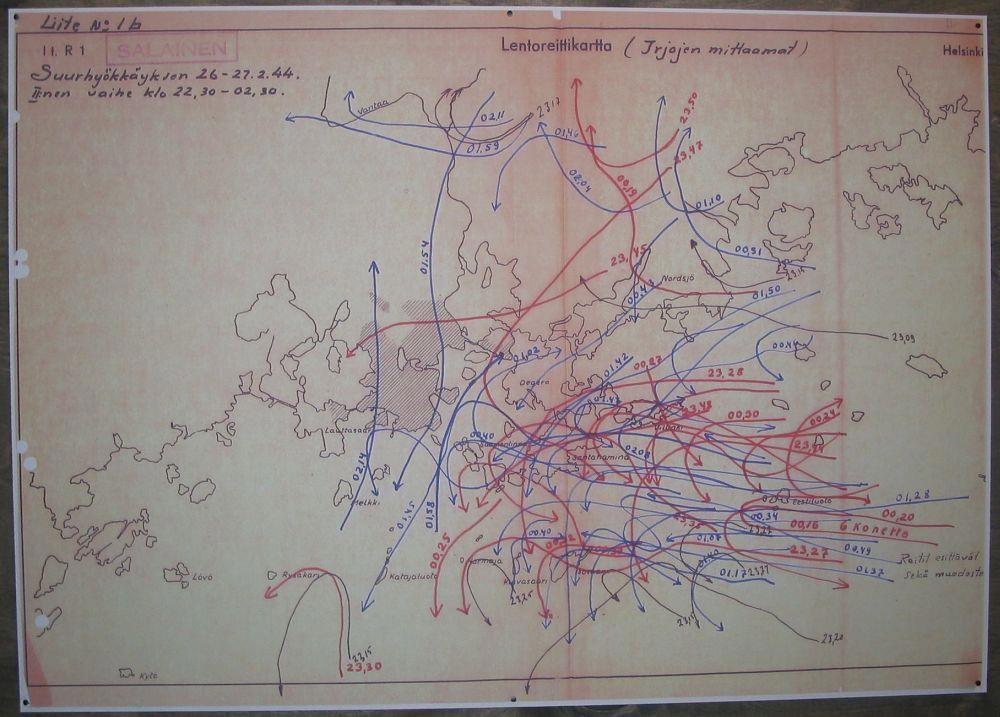 Данные самих финнов выглядели заметно скромнее нарисованной подчиненными Голованова апокалипсической картины. Так, в первый налёт финны насчитали примерно 730 бомбардировщиков, сбросивших 6990 бомб, из которых на город упало примерно 350, а еще около 2500 – вокруг Хельсинки. Судя по всему, несмотря на войну и даже имеющуюся информацию о сосредоточении частей АДД под Ленинградом, ПВО Хельсинки все же пребывало в слегка расслабленном состоянии, привыкнув, что советская дальняя авиация по большей части решает тактические задачи в интересах фронтов, а в дальний тыл на бомбежку залетает редко. К моменту второго налёта финские пво-шники заметно подтянулись, а кроме того, по их просьбе пока еще числившиеся союзниками немцы перебросили под Хельсинки эскадрилью ночных истребителейI/JG302 для усиления уже имевшихся финских "ночников". Во время второго налета финны насчитали 383 бомбардировщиков. Процент попавших в город бомб тоже стал меньше – из 4317 бомб в город попала примерно сотня. Наконец в третьем, самом массированном налёте с 896 самолетов упало 5182 бомб, но только 290 – в черте города. В разных источниках эти цифры могут различаться, но общий вывод схожий – подавляющая часть бомб на город не упала.