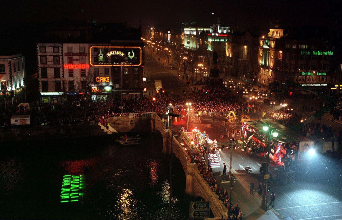 «Часы тысячелетия» со светящимися прямо под водой реки Лиффи цифрами (на фото слева внизу)
