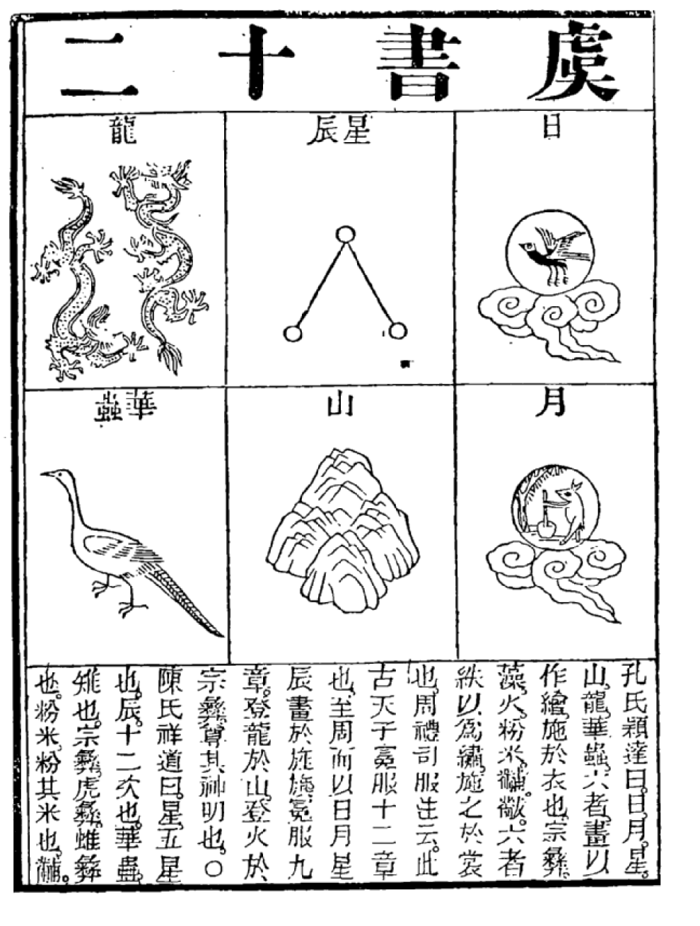 Изображения двенадцати эмблем - из "Исторических записок" Сыма Цяня (2-1 в. до н.э.)