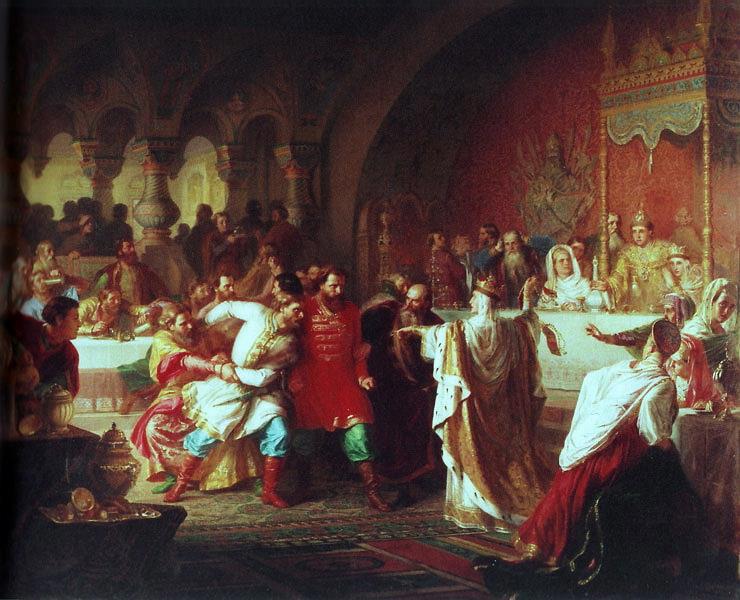 Сцена в русской истории (и живописи) известная, см. «Золотой пояс Дмитрия Донского». Мало того, что он золотой и дорогущий, пояс в индоевропейской традиции — символ мужчины, воина. Сорвать его — невероятное оскорбление, тем более публично, так что скандалище вышел знатный.
