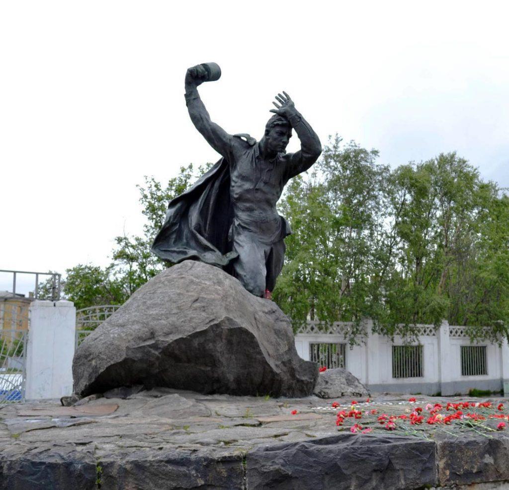 Мурманск, памятник герою Советского Союза Анатолию Бредову — с некоторых ракурсов кажется, что он пытается разбить бутылку (я предупреждал, что народ наш порой крайне циничен) «Пьянству — бой!»: