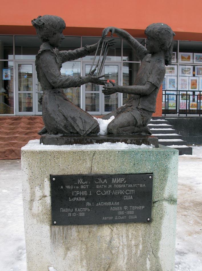 В городе Черновцы есть памятник «Колиска миру» (Колыбель мира), посвященный городу-побратиму Солт-Лейк-Сити. Казалось бы, что тут придумаешь? Ан нет — «Девочка с соплями»: