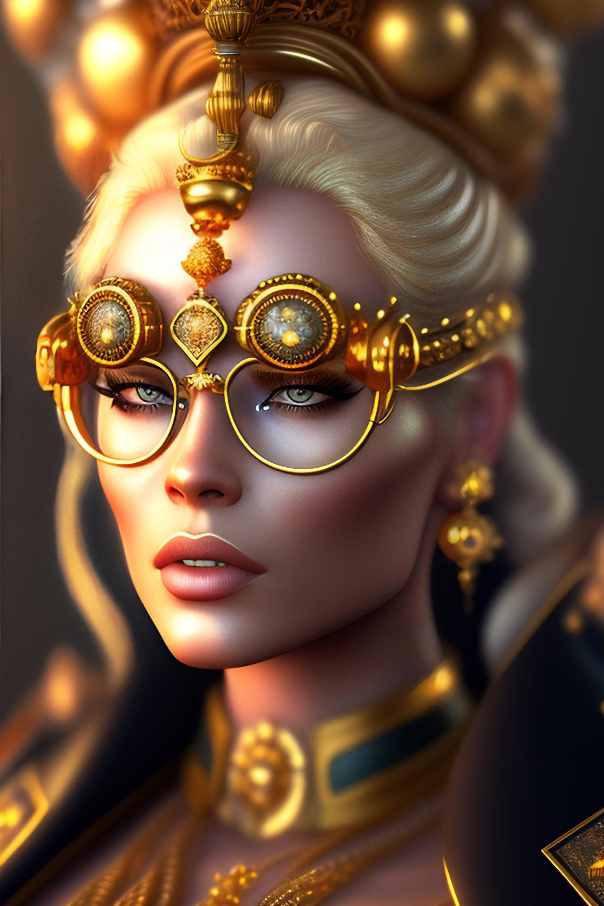 Я решил, что пора перейти на более продвинутые сервисы и выбрал DALL-E от OpenAI. Я ввел описание красивой девушки с фантастическими украшениями в тех же самых стимпанк очках и нажал кнопку "создать". Я был удивлен, когда увидел перед собой картинку с девушкой, как на сказочной иллюстрации. Правда стимпанк очки на ней были совершенно не такие, как я ожидал. Но и они меня впечатлили.