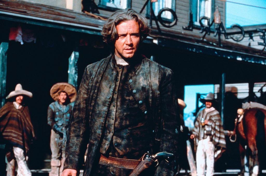 Рассел Кроу, только-только сыгранувший в «Румпер-стумпер» новозеландского скина, именно в «Быстром и мёртвом» стал известен широкой публике. Не сказать, что его Корт, священник в настоящем и бандос-стрелок в прошлом поражал той же харизмой, что Максимус Децимус Меридий в недалёком будущем, но… Но Рассел оказался хорош, кудряв, строен и красив. Да и стрелял он просто на загляденье.