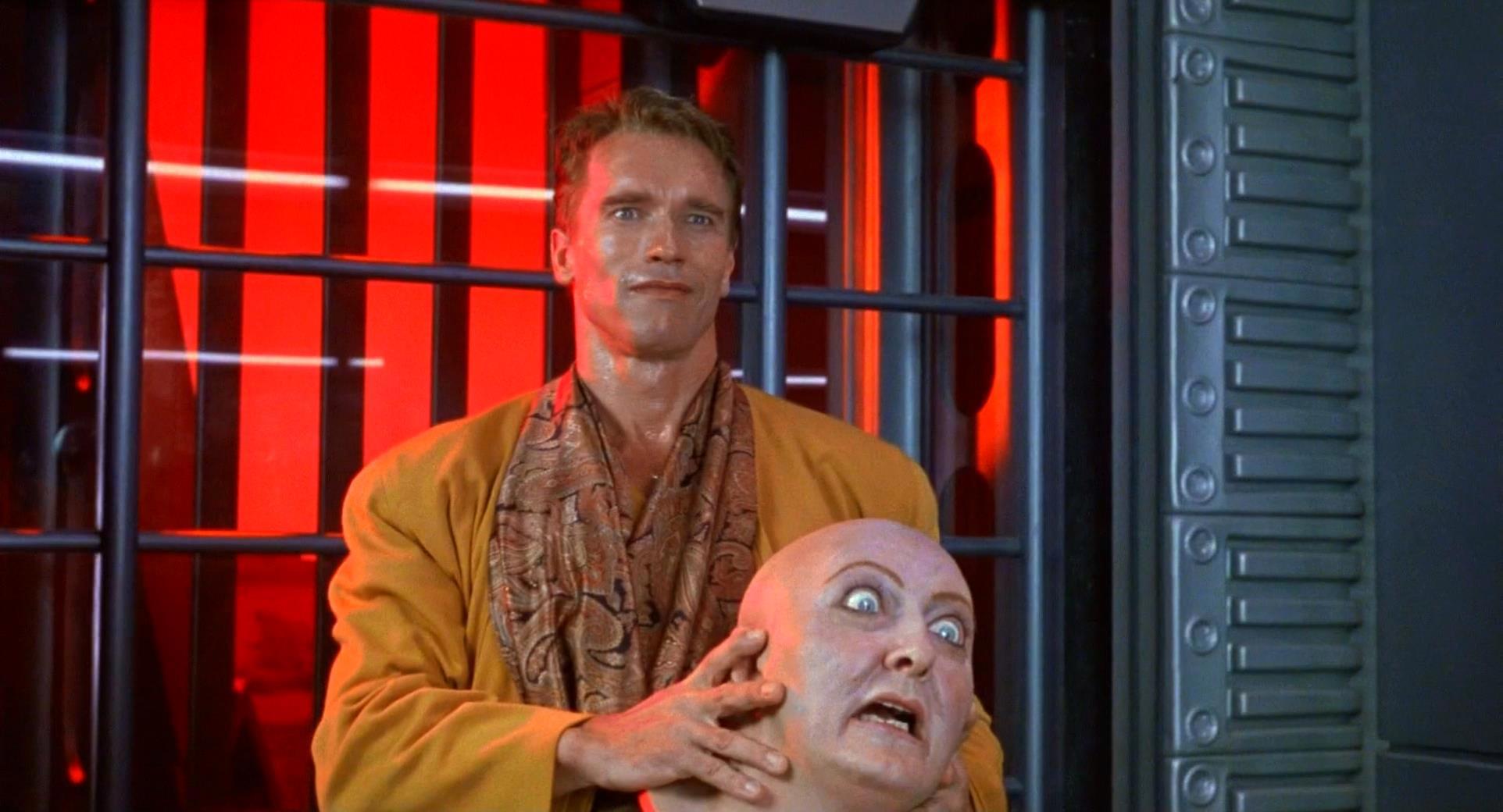 Даг сходил, в ходе внедрения воспоминаний ему вдруг поплохело до «атас, ща набегут легавые и всех повяжут, я спецагент, я тайный резидент, одет будто кент, вот мой патент (с), ТТ-34, песня «Бельмондо» и Куэйд свинтил домой. Дома ждал знатный махач с озверевшей жёнушкой, набежавшие упыри со стволами, чемодан с подарками от себя любимого и забытого, сраный робот-водитель с тупыми приколами, полёт на Марс, мутанты-повстанцы, злодейский злодей Кохей ген с лицом Дика из «Робокопа», предательства, перестрелки, много красных бликов, технологии инопланетян и хэппи-энд. И, конечно же, мордобой, приключалово, преодолевания и та самая смугляшка в качестве бонуса.