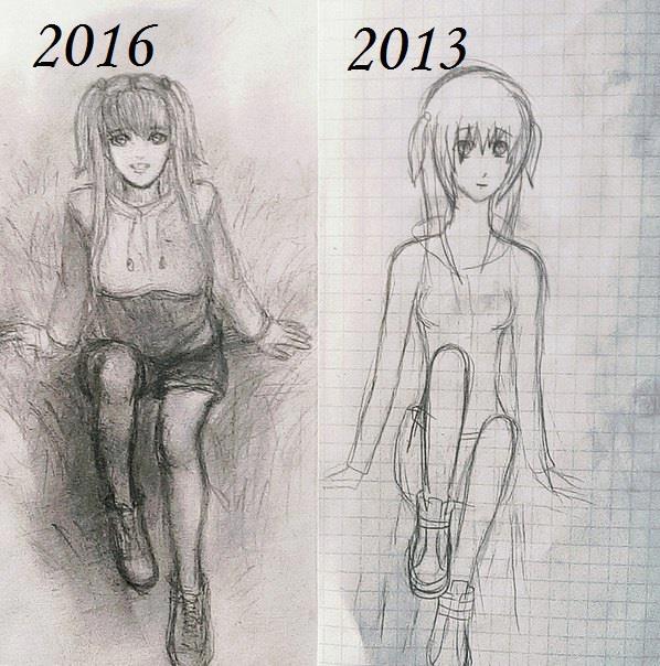 Так вот, просматривала я эти кривости к первому роману. Мне взбрело их перерисовать спустя много времени. Отследить уровень своего прогресса, есть ли он вообще. Лично я считаю его несколько медленным для 6ти лет. Но у каждого своё время, и что-то дано понять не сразу. И, честно говоря, я не понимаю начинающих художников, когда они, выкладывая свою кривоту, спрашивают у всего интернета "стоит ли...?" Это всё равно, что спросить разрешение у хрен пойми кого.