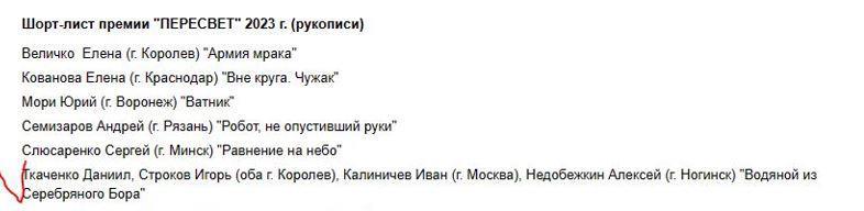 попал в шорт-лист премии ПЕРЕСВЕТ