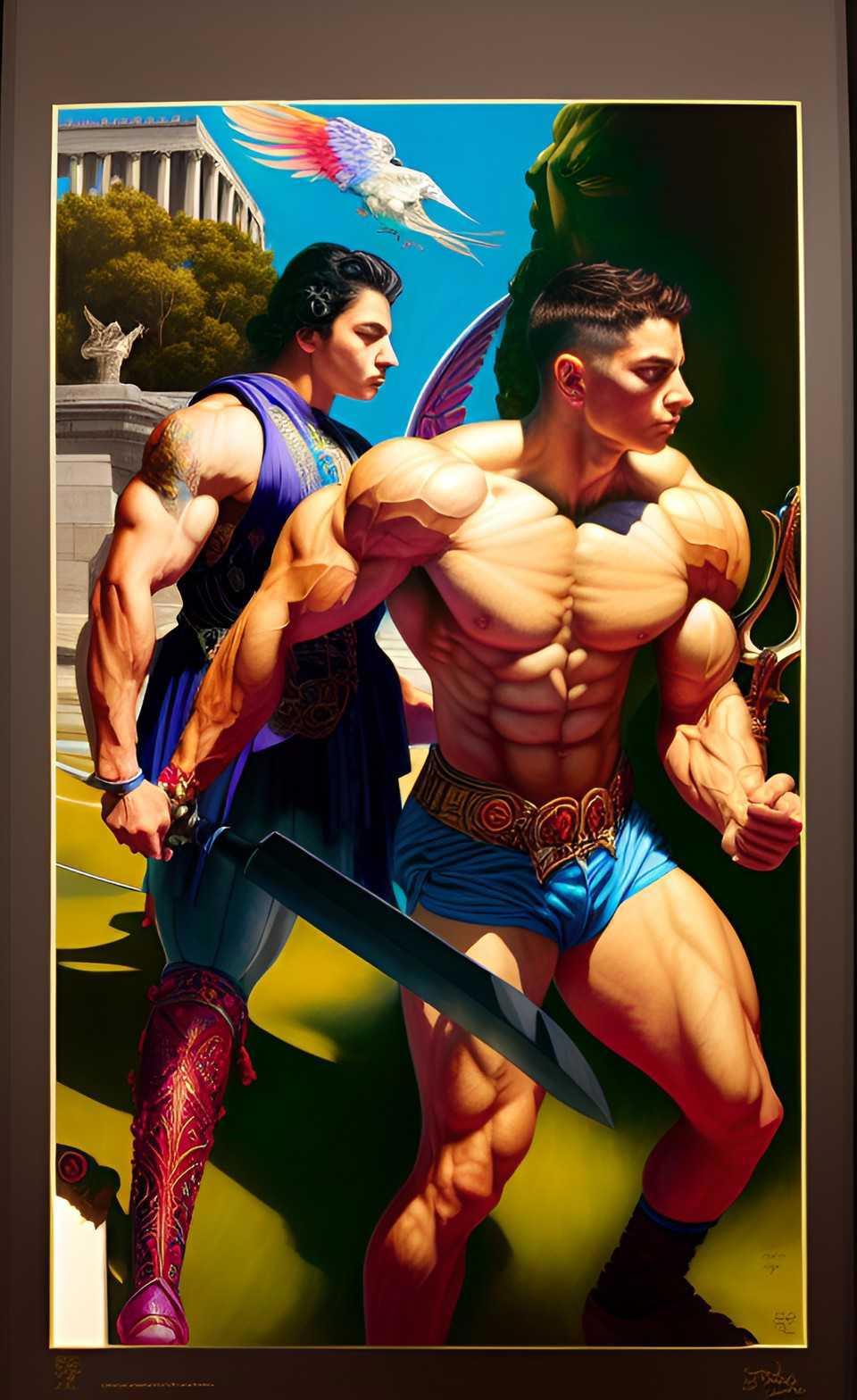 "Хижина Лаэрта". Несколько странный фанфик по Гомеру. На иллюстрации Мелантий и Леокрит идут разбираться с Одиссеем: