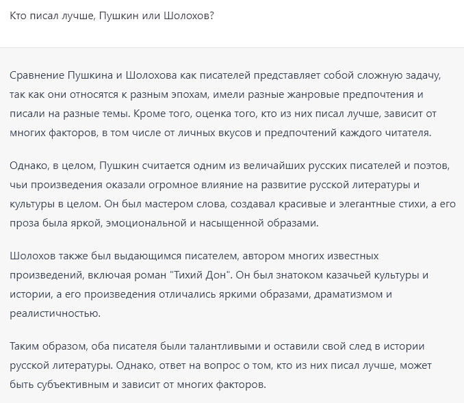 Если взять человека, то его логический блок – то, что принято называть ненаучным термином «душа». Именно по этой причине человек разумен, а что касается ChatGPT… На это счет у меня два предположения, собственно.