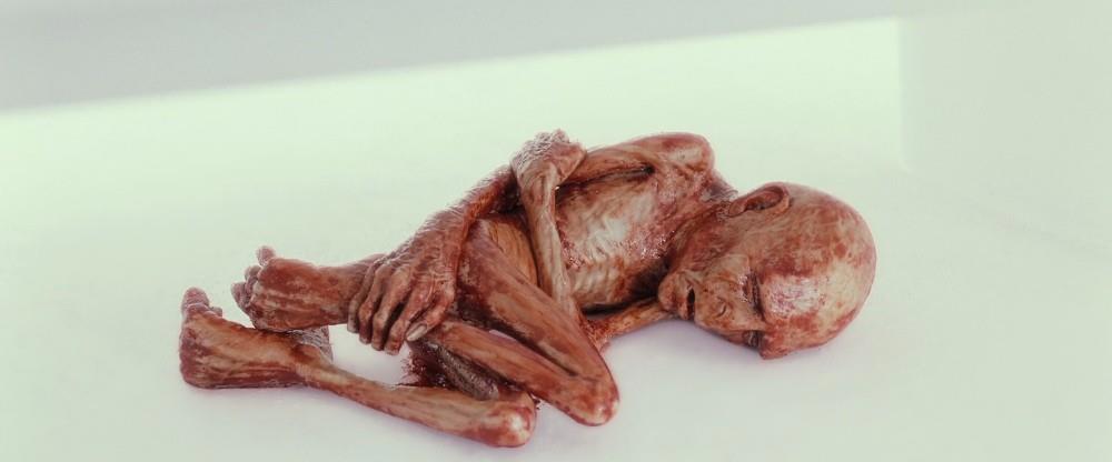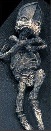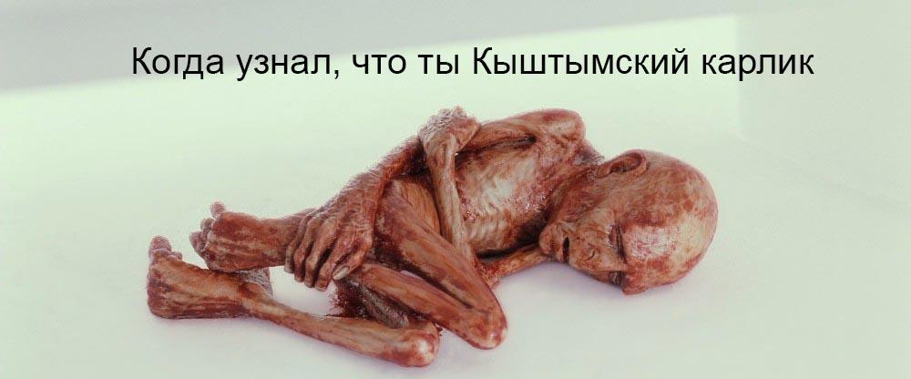 Это изображение Кыштымского карлика. В 1996 году в Челябинской области психически нездоровая пенсионерка нашла на кладбище во время грозы неизвестное существо. Сама она называла существо Алёшенькой и утверждала, что некоторое время этот господин проживал у нее, а потом взял и помер. Возможно, от неправильной кормежки. Затем какое-то время полежал в гараже у соседа (сосед решил, что это инопланетянин, которого можно выгодно продать). А потом милиция забрала тело на экспертизу, и оно таинственным образом исчезло.