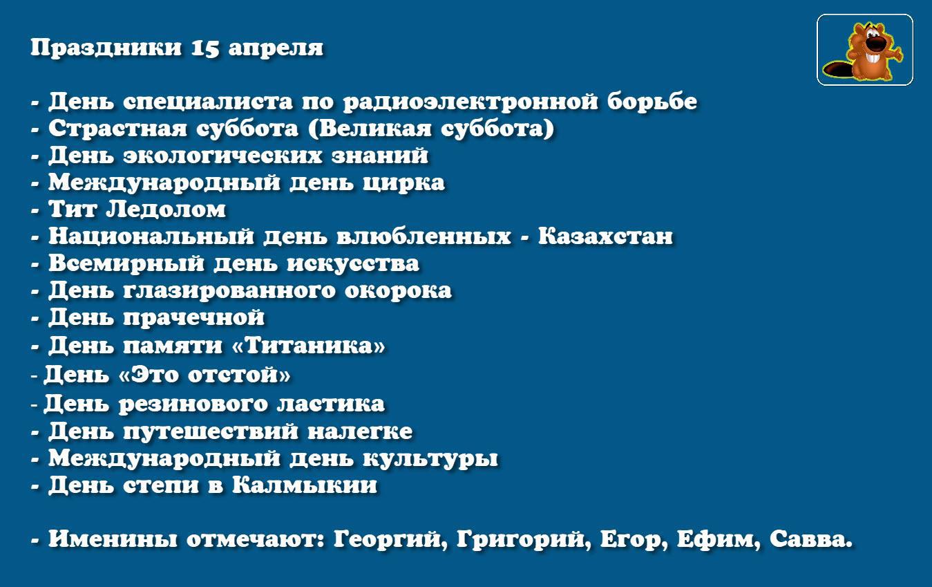 Р.S. Вдруг почему-то подумалось, что сегодня "дважды культурный день": и, собственно, День искусства, и день Министерства культуры... Говорите, нет такого в списке? А "День прачечной" есть? Вспоминаем анекдот...
