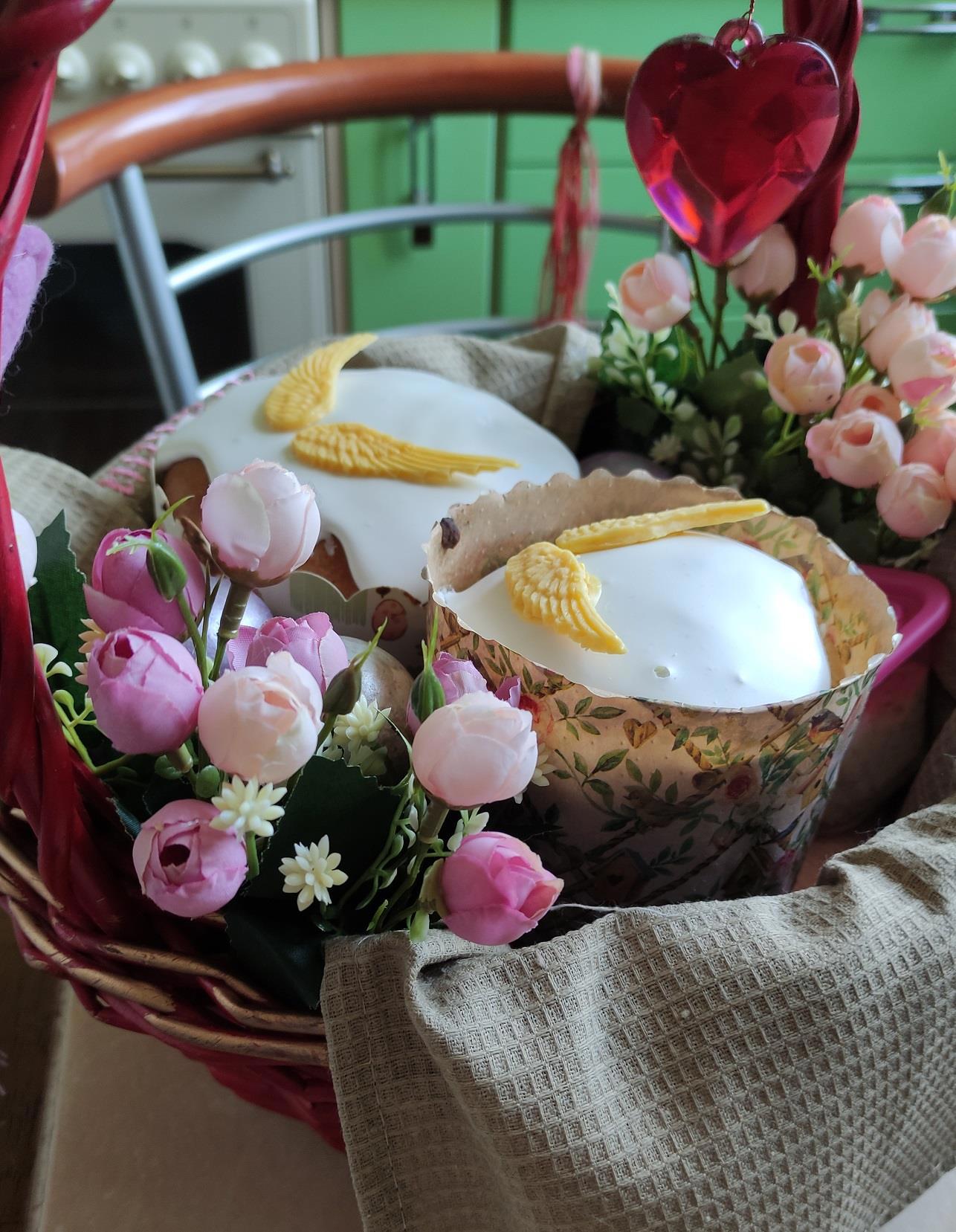 Ну и, как положено, всем добра =) И фото моей пасхальной корзинки. В этот раз куличи у меня с крылышками. Ангел в гости прилетал, да крылышки и обронил. А я не растерялась, взяла их, и на куличики пристроила =) И, да, куличи мои в три дома в этот раз пошли - двоим подругам, у которых мамы болеют, и свекру, конечно. Вкусные куличи, правда-правда =) Вот =)