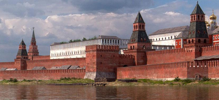 На реконструкции видно, что между стенами полно всякого деревянного зодчества: хоздворы, склады и так далее. Но и внутри дров хватало, иначе в 1701 году Кремль бы так не горел, что аж земля спекалась, а колокол "Ивана Великого" тогось.