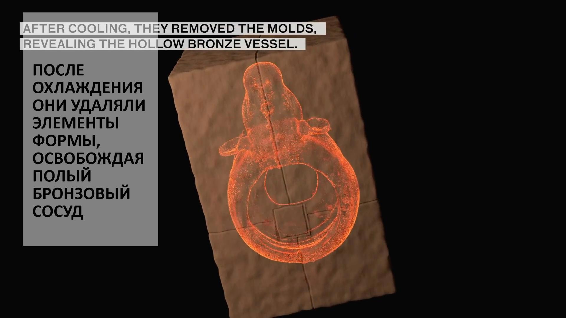 Музей Азиатского Искусства в Сан-Франциско представляет анимационную презентацию, показывающую отливку бронзового сосуда династии Шан (2 тыс. до н.э.)